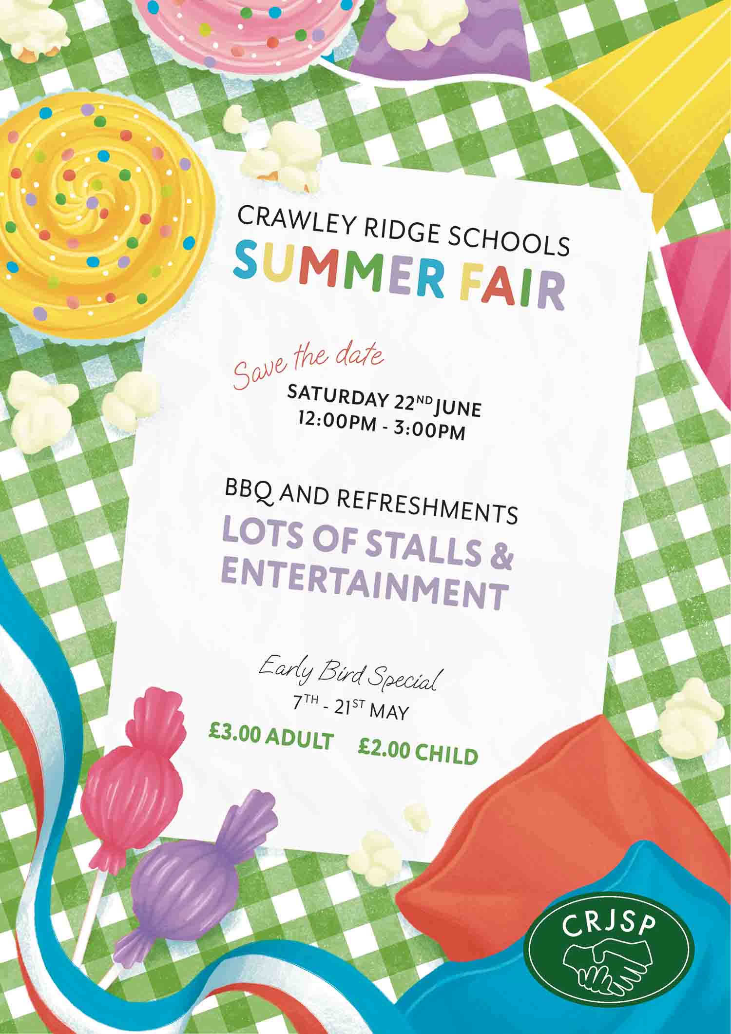 This client requested a logo to represent their school PTA for use in parents newsletters, advertising and at school events. It was important the logo incorporated the house style of the school, using their recognisable green palette. In the design stage, a pale peach was experimented with to compliment the green and provide more variation in the design. The aim of the design was to embody partnership, with this explored with the use of meeting hands. A detailed hand holding pose was chosen for the main image in a white outline to portray this theme. An illustrated mock-up of a summer fair poster was designed to present the logo in use.